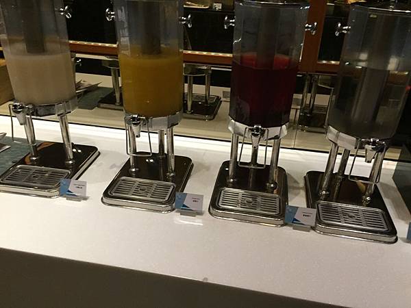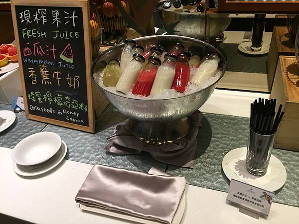 紅色是西瓜汁 沒拿起來喝過 怕一喝就飽啦